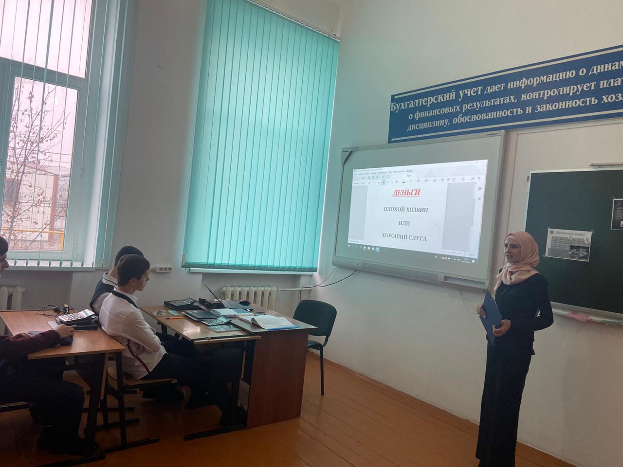 05.12.2019В рамках проведения недели по специальности "Экономика и бухгалтерский учет" прошел классный час в группе ЭБУ 18-9 на тему "Деньги - плохой хозяин или хороший слуга". Организатор мероприятия преподаватель спец.дисциплин Ахмедова Х.И.