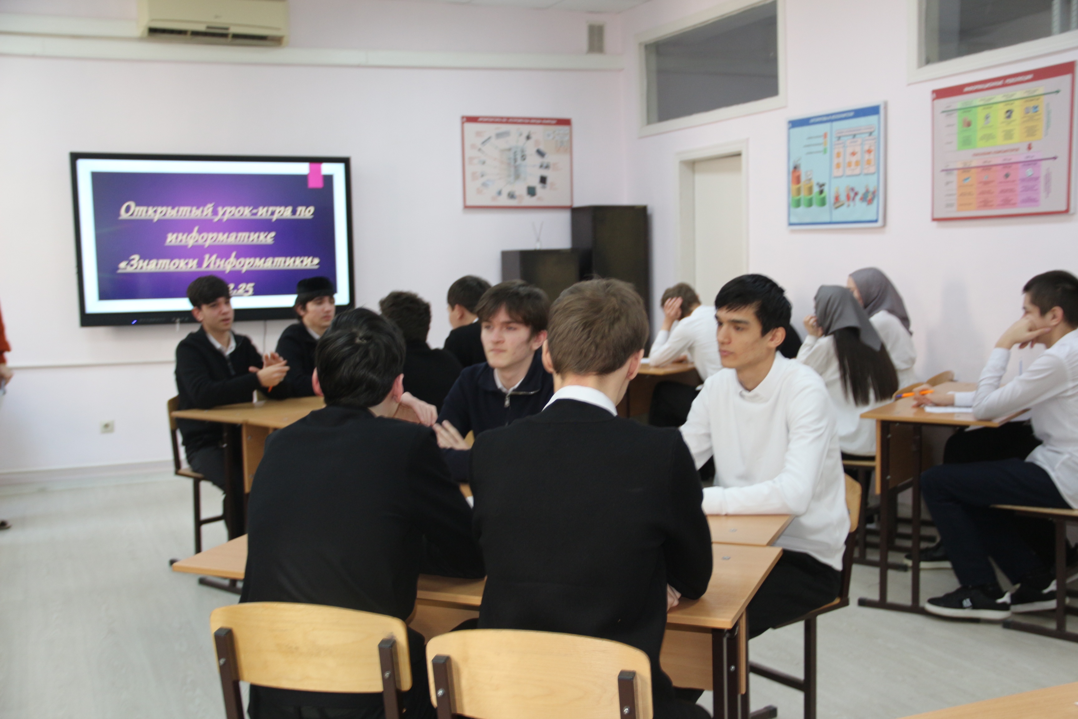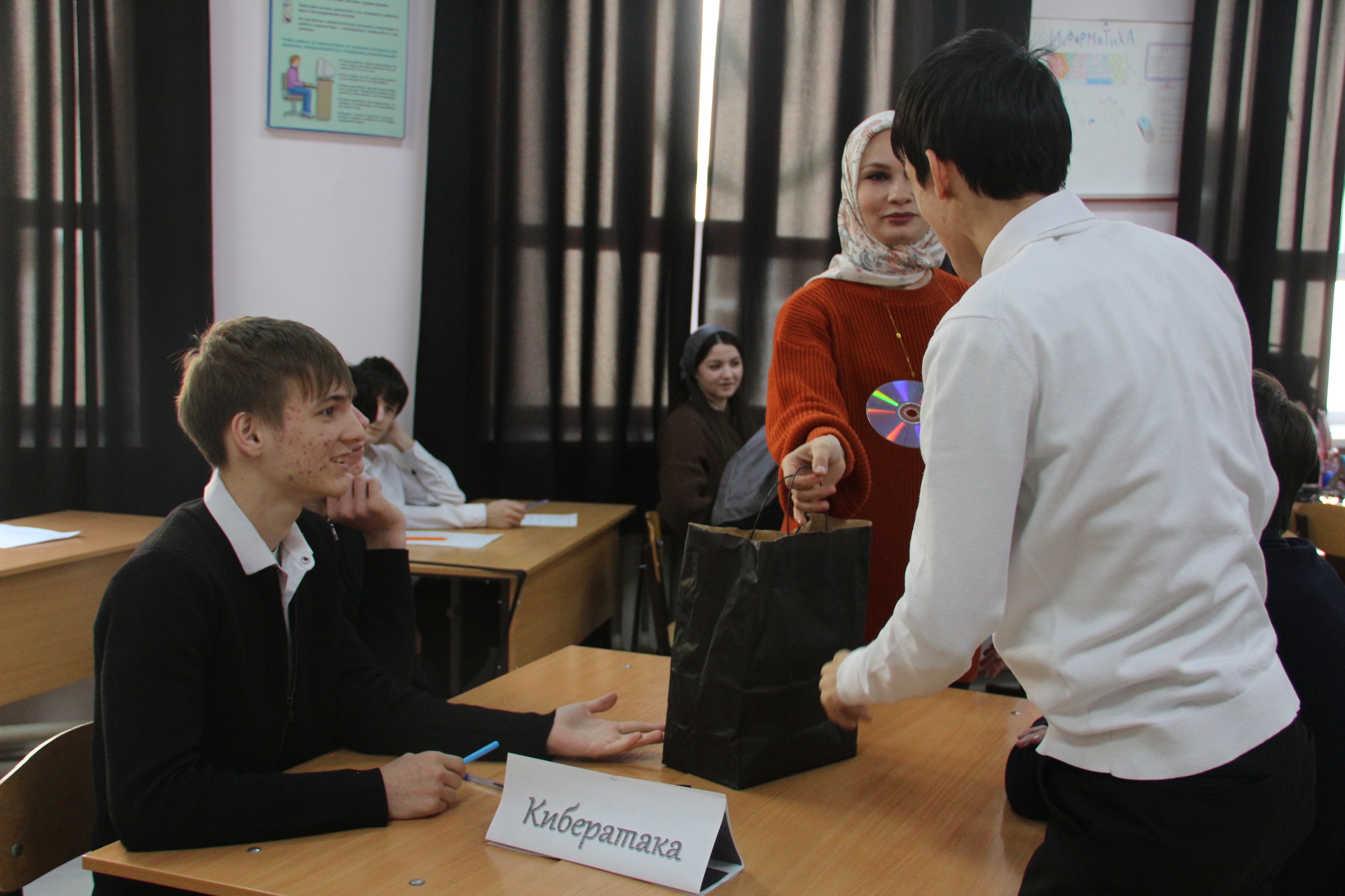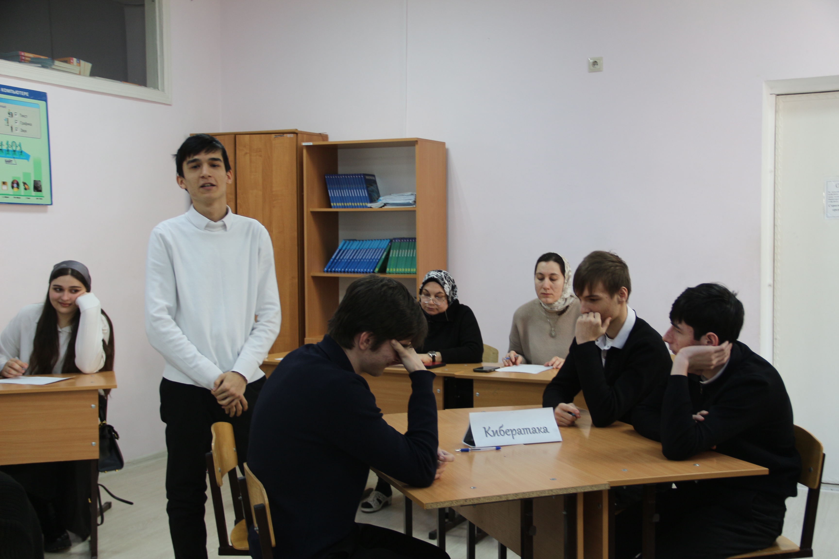 5 февраля Дадаева А.С. провела урок-игру «Знатоки информатики». Игра состояла из 8 конкурсов которые включали различные разделы информатики, в виде вопросов, ребусов, кроссвордов и филвордов. Последним стал конкурс «черный ящик». В игре приняли участие две команды студентов «Кибератака» и «МММХ». По итогам всех состязаний победила команда «Кибератака».